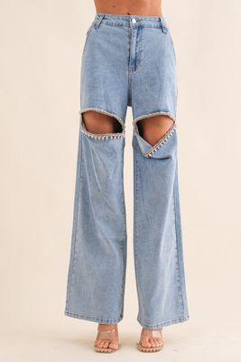 HIGH RISE WIDE LEG WITH PEARL EMBELLISHMENT