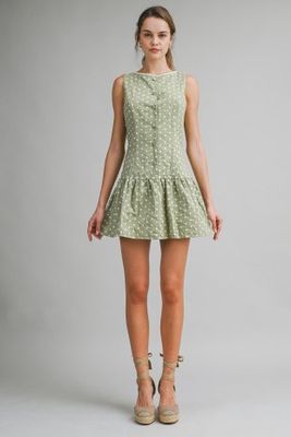Sage Daisy Floral Mini Dress With Button Front