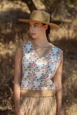 Short-sleeve Pointelle Ribbed Knit Sweater