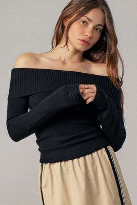 RIB KNIT TOP WITH LACE BALLOON SLEEVES